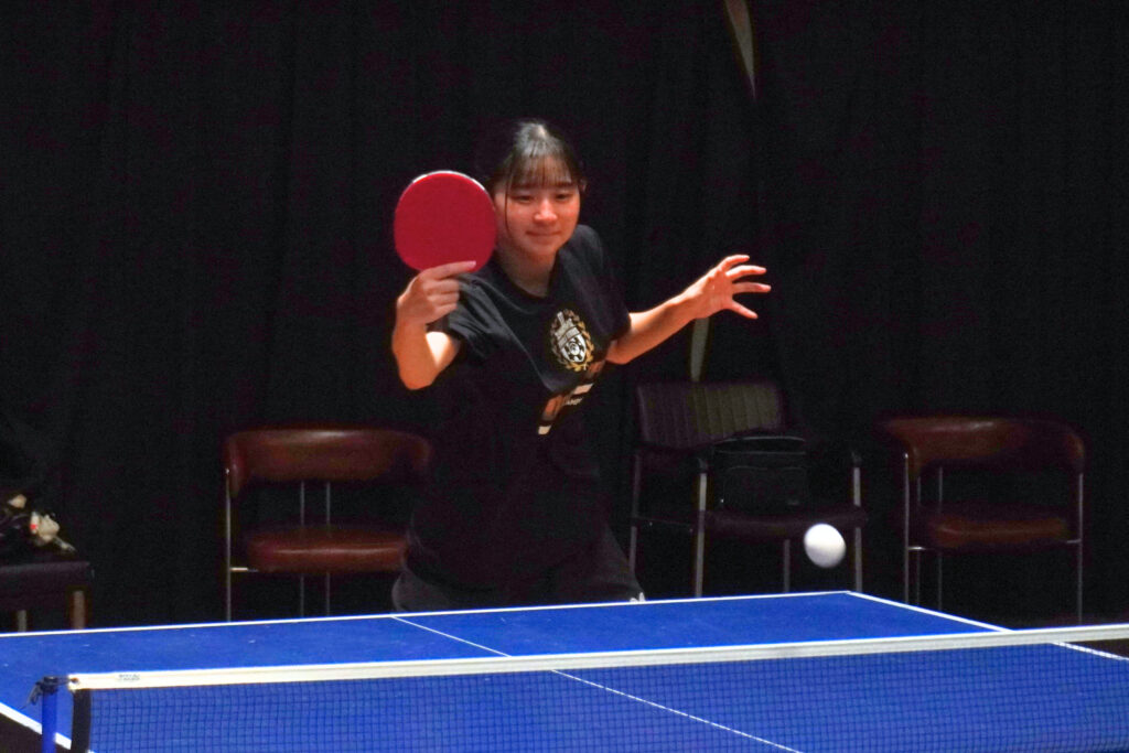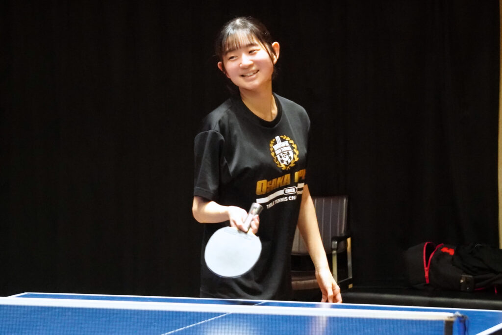 小学校4年生から卓球を始めたこども学科2年生の坂井さん。