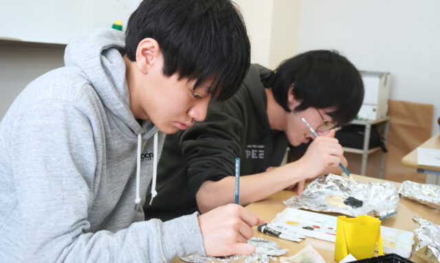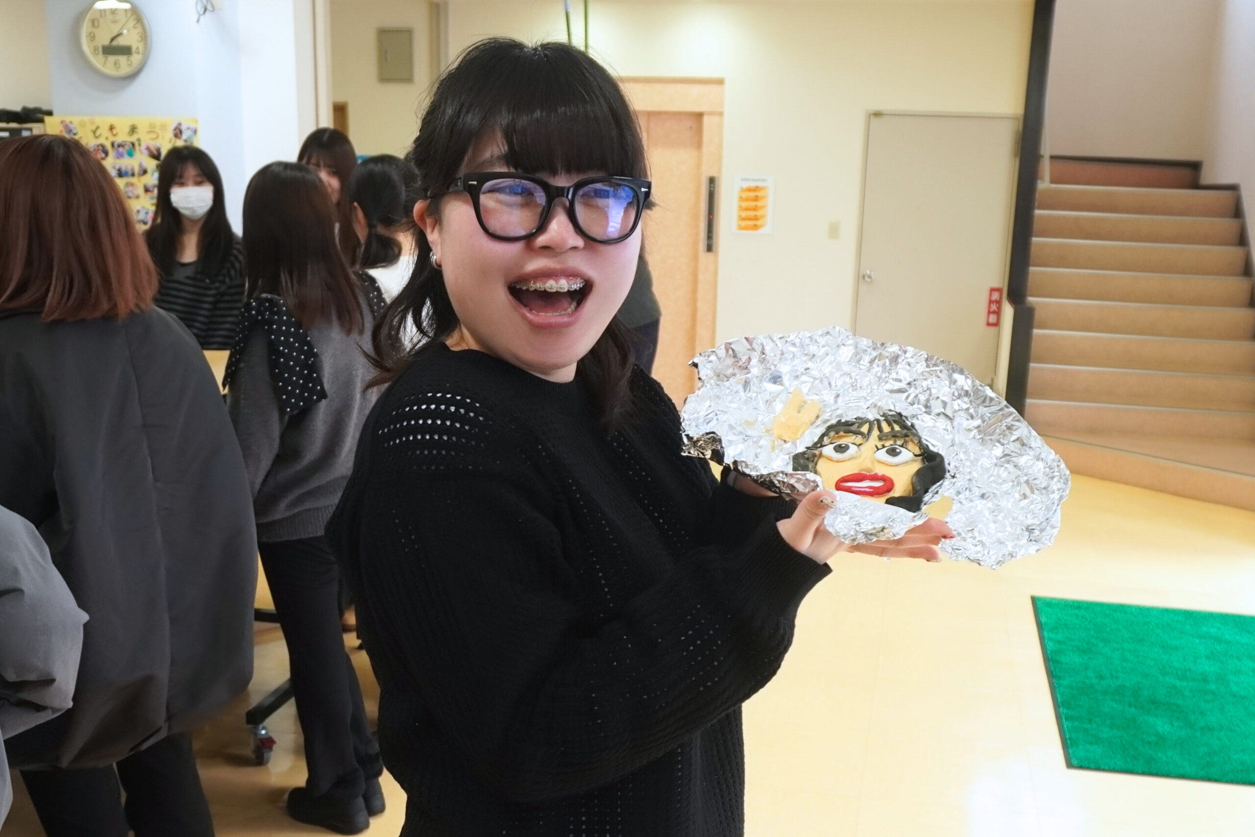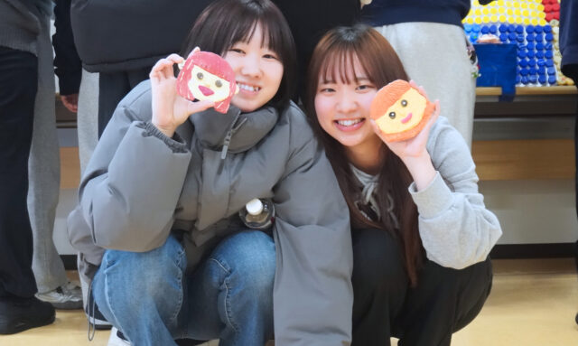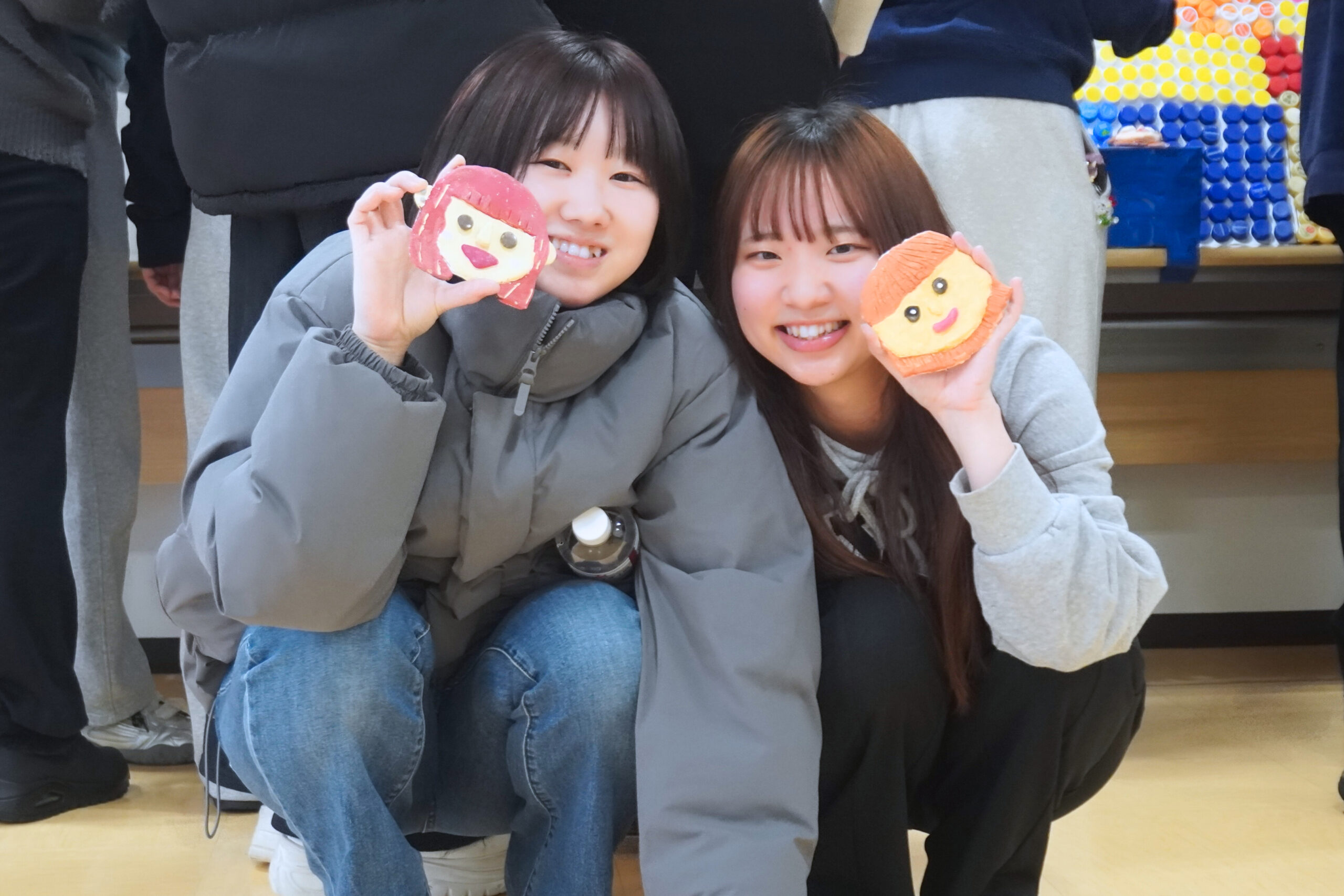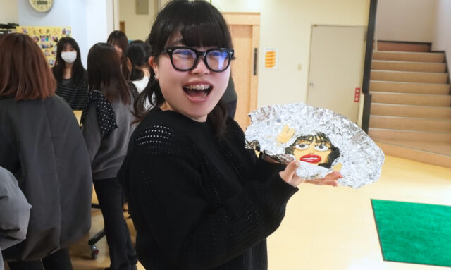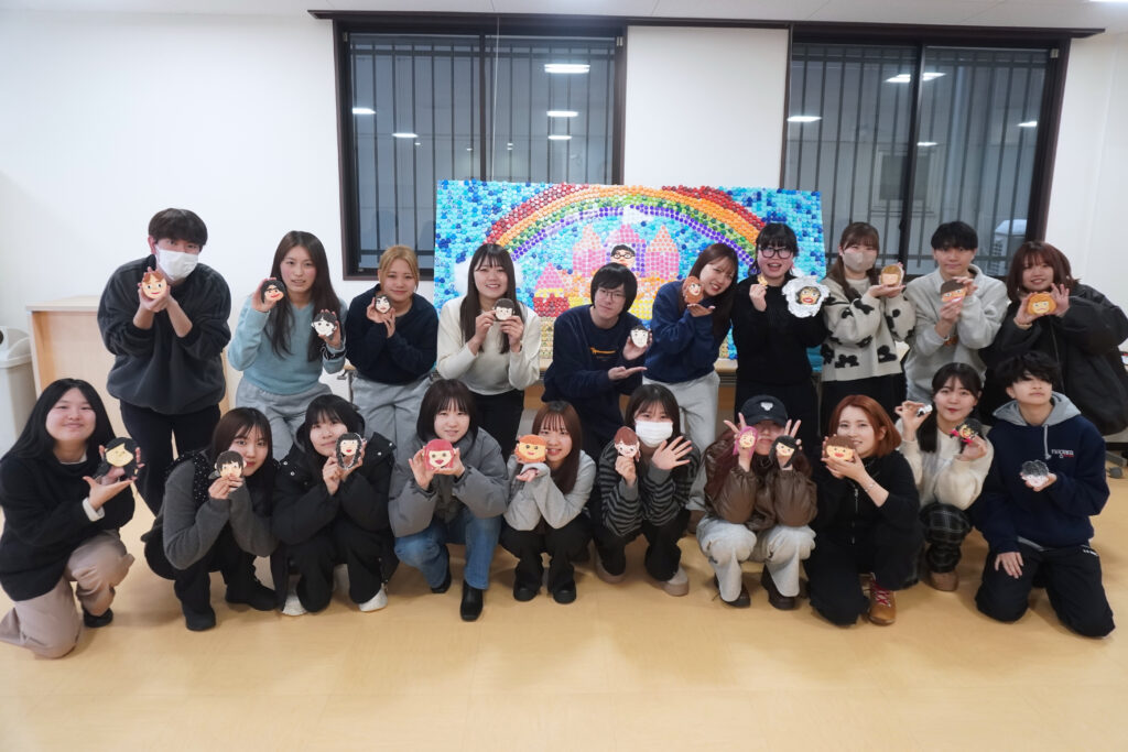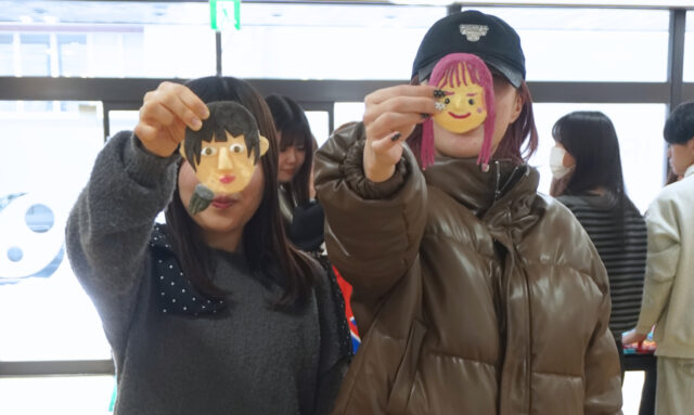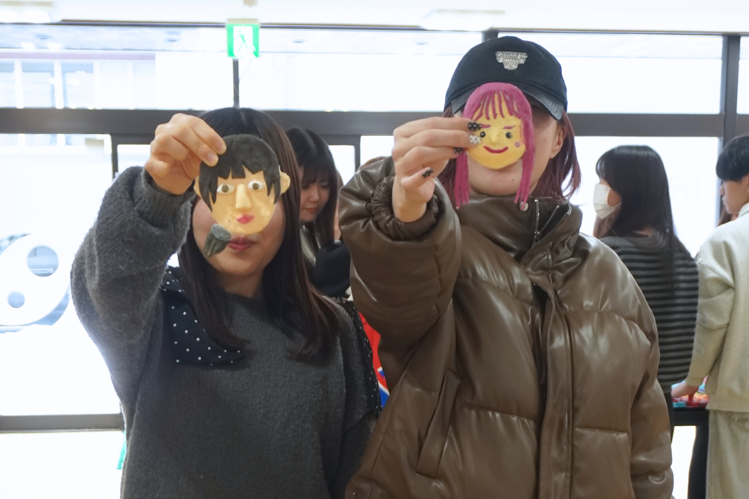 クラスメイトが作ってくれた顔にご満悦の学生達😊